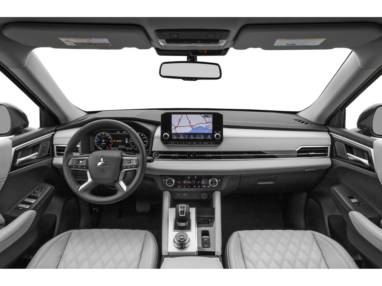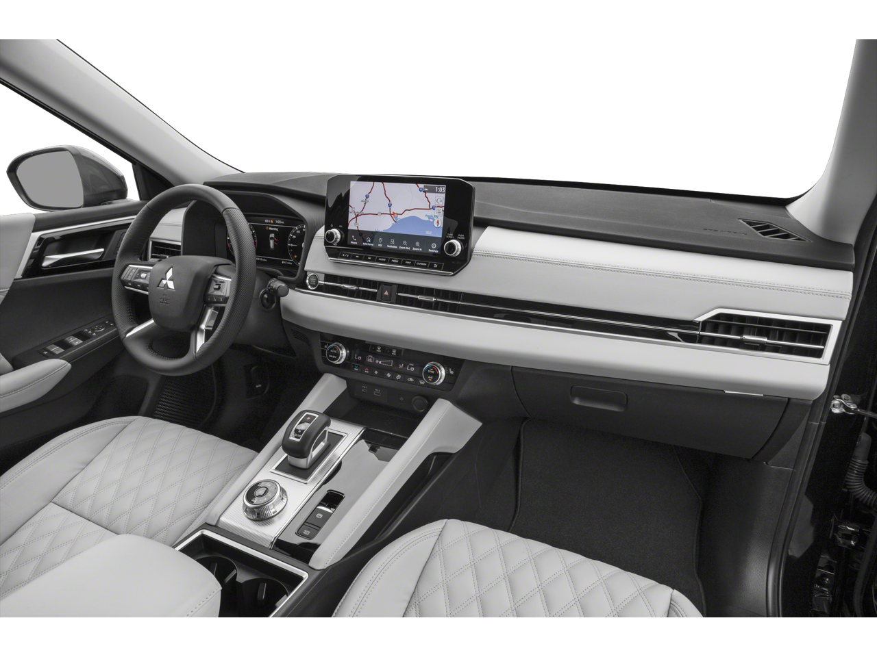3rd row seats: split-bench, 4-Wheel Disc Brakes, 6 Speakers, ABS brakes, Air Conditioning, Alloy wheels, AM/FM radio: SiriusXM, Android Auto & Apple CarPlay, Auto High-beam Headlights, Auto-dimming Rear-View mirror, Automatic temperature control, Axle Ratio: 5.694, Brake assist, Bumpers: body-color, Driver door bin, Driver vanity mirror, Dual front impact airbags, Dual front side impact airbags, Electronic Stability Control, Emergency communication system: Mitsubishi Connect w/ 24-month trial, Four wheel independent suspension, Front anti-roll bar, Front Bucket Seats, Front Center Armrest w/Storage, Front dual zone A/C, Front fog lights, Front reading lights, Fully automatic headlights, Heated door mirrors, Heated Front Bucket Seats, Heated front seats, Illuminated entry, Knee airbag, Leather Seat Trim, Leather Shift Knob, Leather steering wheel, Low tire pressure warning, Memory seat, Navigation system: Powered by TOMTOM, Occupant sensing airbag, Outside temperature display, Overhead airbag, Overhead console, Panic alarm, Passenger door bin, Passenger vanity mirror, Power door mirrors, Power driver seat, Power Liftgate, Power passenger seat, Power steering, Power windows, Radio data system, Radio: AM/FM 9.0 Navigation w/Smartphone Link, Rain sensing wipers, Rear air conditioning, Rear anti-roll bar, Rear seat center armrest, Rear side impact airbag, Rear window defroster, Rear window wiper, Reclining 3rd row seat, Remote keyless entry, Roof rack: rails only, S