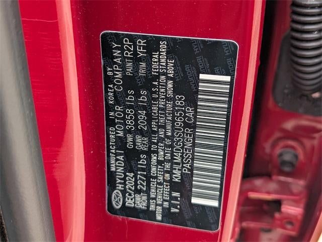 Option Group 01, Hyundai Certified Used Vehicles Certified, 17 x 7.0J Alloy Wheels, 4-Wheel Disc Brakes, 6 Speakers, ABS brakes, Air Conditioning, All-Season Fitted Liners, Alloy wheels, AM/FM radio, Apple CarPlay & Android Auto, Auto High-beam Headlights, Automatic temperature control, Brake assist, Bumpers: body-color, Carpeted Floor Mats, Delay-off headlights, Driver door bin, Driver vanity mirror, Dual front impact airbags, Dual front side impact airbags, Electronic Stability Control, Exterior Parking Camera Rear, First Aid Kit, Front anti-roll bar, Front Bucket Seats, Front Center Armrest, Front dual zone A/C, Front reading lights, Front wheel independent suspension, Fully automatic headlights, Illuminated entry, Leather Shift Knob, Leather steering wheel, Low tire pressure warning, Occupant sensing airbag, Outside temperature display, Overhead airbag, Overhead console, Panic alarm, Passenger door bin, Passenger vanity mirror, Power door mirrors, Power steering, Power windows, Premium Cloth Seat Trim, Radio: AM/FM/HD Display Audio, Rear side impact airbag, Rear window defroster, Remote keyless entry, Roadside Assistance Kit, Security system, Speed control, Speed-sensing steering, Spoiler, Steering wheel mounted audio controls, Tachometer, Telescoping steering wheel, Tilt steering wheel, Traction control, Trip computer, and Variably intermittent wipers.